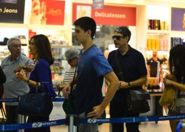 Fátima estava com um visual elegante e confortável para viajar, enquanto Bonner escolheu um mais despojado.