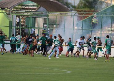 Enquanto o pau quebrava dentro das quatro linhas, torcedores invadiram o gramado