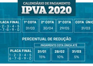 Pagamento do IPVA em janeiro terá 15% de desconto na cota única