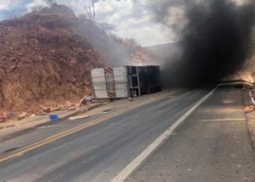 Motorista morre queimado após carreta pegar fogo na BR-316