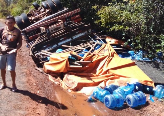 Um caminhão carregado de galões de água mineral tombou, na tarde dessa quarta-feira (28), na BR-222, entre os municípios de Batalha e Piripiri, região Norte do Piauí.